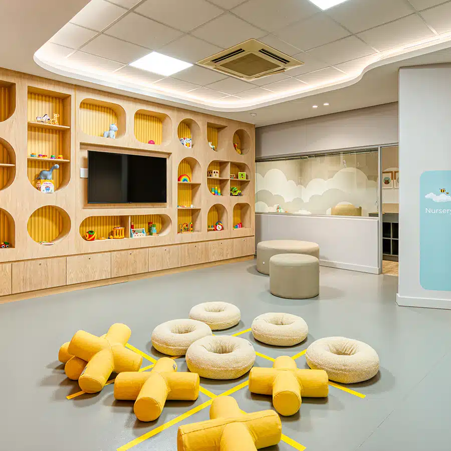 Access-controlled movement & care space for kids from 6 weeks to 7 years.